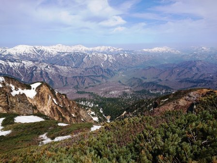御池駐車場から山頂まではほぼ直線で、山頂近くでは左に巻きながら登りました。山頂は俎嵓(まないたぐら)と柴安嵓(しばやすぐら)があり、柴安嵓から尾瀬ヶ原が一望できます。尾瀬ヶ原の先に至仏山があり、尾瀬ヶ原を挟んで燧ヶ岳と至仏山が対峙しています。