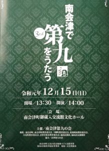 投稿日: 2019年12月17日第九ロス 南会津での第九が 終わってしまい 今年も残りわずかだなあと 歌うのは3回目ですが 歌い方も変わってきたような。 初回は、歌詞を覚えるだけ ドイツ語だから難しい 二回目は、強弱をつけ クレッシェンド、デクレッシェンドなど 三回目の今回は、細部にこだわり スポルザントやドイツ語の発音 なんのことやら(笑) 四回目はどうなることやら 三年後を楽しみにします(笑)。 それにしても遠方から来てる方がいたのにはびっくり!! 青森や東京などなど。 第九は共通語ですねw。
